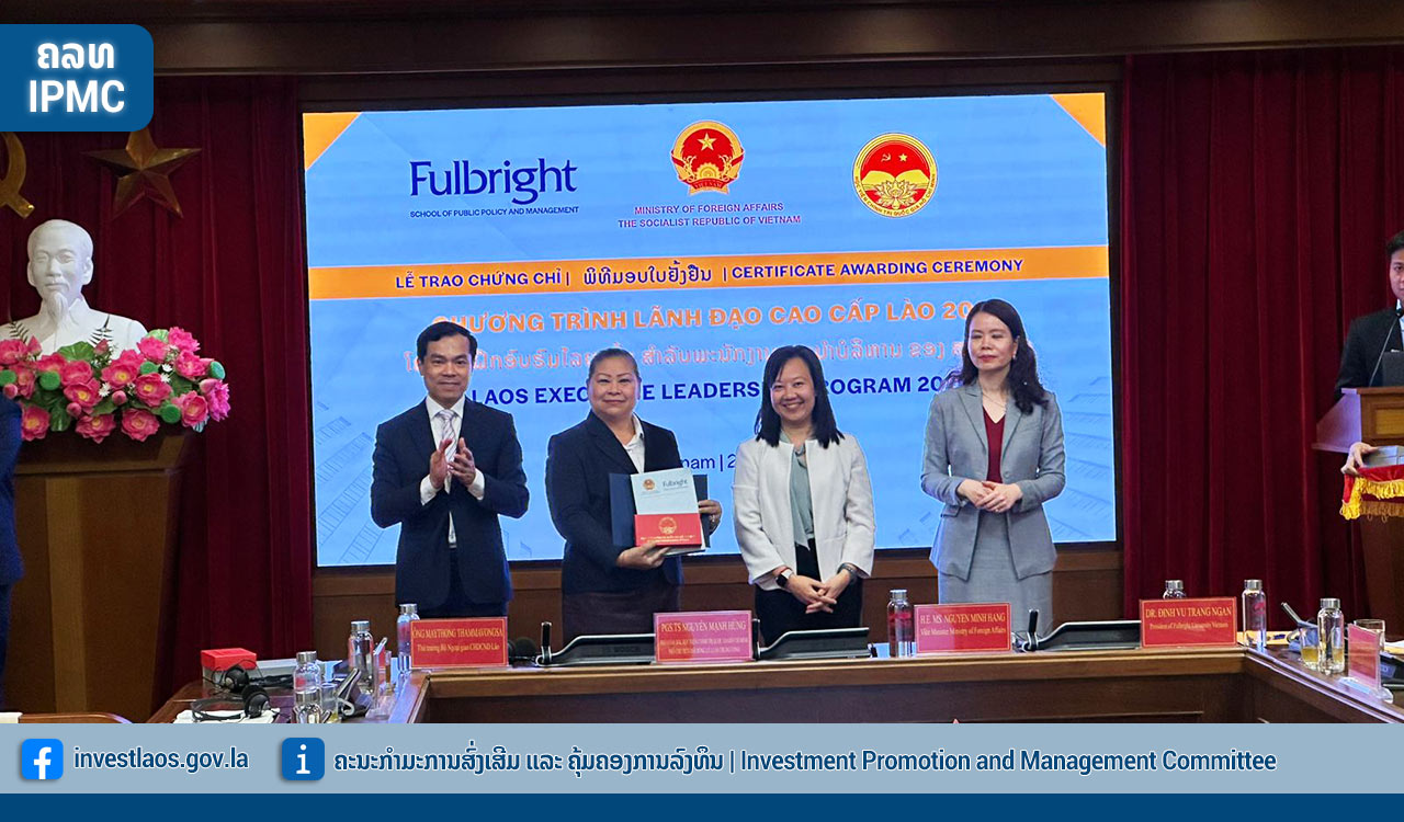 ທ່ານ ນາງ ລັດຕະນາ ອິນທະພົນ ຮອງຫົວໜ້າຫ້ອງການຄະນະກຳມະການສົ່ງເສີມ ແລະ ຄຸ້ມຄອງການລົງທຶນ ເຂົ້າຮ່ວມຝຶກອົບຮົມ ແລະ ທັດສະນະສຶກສາ ທີ່ ສສ ຫວຽດນາມ ໃນລະຫວ່າງ ວັນທີ 23-28/03/2026 ນຳພາຄະນະໂດຍ: ທ່ານ ໄມທອງ ທຳມະວົງສາ ຮອງລັດຖະມົນຕີກະຊວງການຕ່າງປະເທດ ໂດຍມີຂະແໜງການກ່ຽວຂ້ອງ ຂອງ ສປປລາວ ເຂົ້າຮ່ວມ 25 ທ່ານ, ໃນຫົວຂໍ້: ການພັດທະນາເສດຖະກິດຂອງລາວ, ຈັດໂດຍ: ມະຫາວິທະຍາໄລ ນະໂຍບາຍ ແລະ ການພັດທະນາ Fulbright Vietnam+ ສະຖາບັນການເມືອງການປົກຄອງແຫ່ງຊາດ ຫວຽດນາມ, ຈຸດປະສົງຂອງການຝຶກອົບຮົມຄັ້ງນີ້ ແມ່ນເພື່ອຖອດຖອນບົດຮຽນ ແລະ ປະສົບການຈາກ ສສ ຫວຽດນາມ ໃນການພັດທະນາເສດຖະກິດ ເພື່ອມານຳໃຊ້ ໃນການຈັດຕັ້ງຜັນຂະຫຍາຍ ແຜນພັດທະນາເສດຖະກິດສັງຄົມ ຄັ້ງທີ 10 ຂອງລາວ ແລະ ມະຕິ 04/ກມສພ ວ່າດ້ວຍ ການສ້າງເສດຖະກິດເອກະລາດເປັນເຈົ້າຕົນເອງ ຂອງສູນກາງພັກ ໃຫ້ໄດ້ຮັບຜົນດີ.