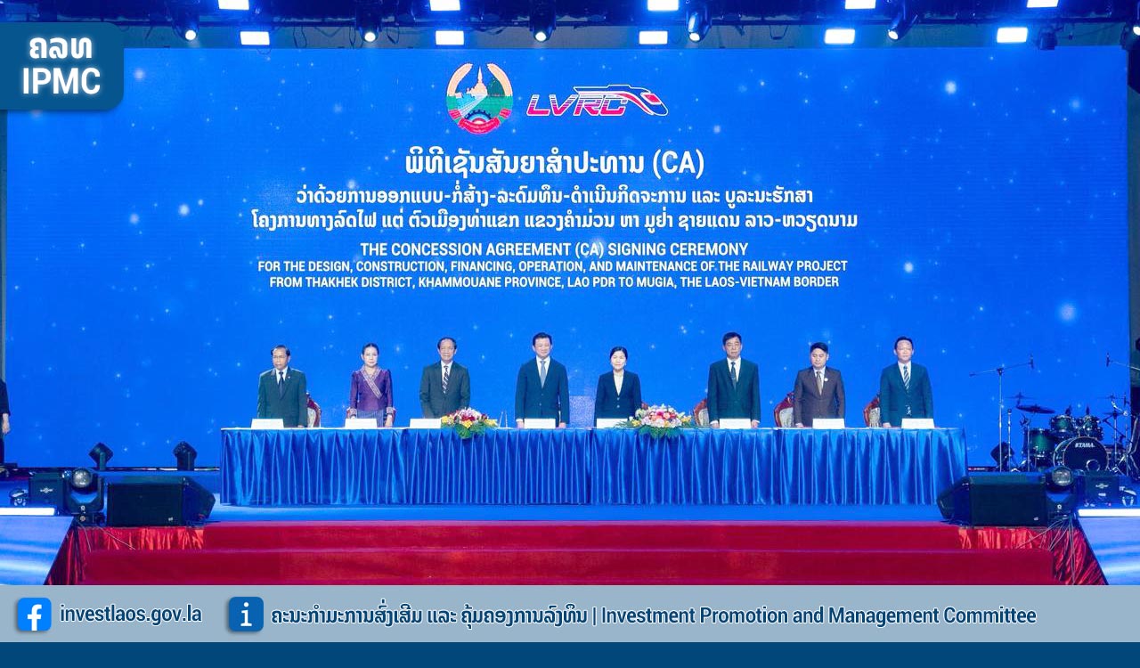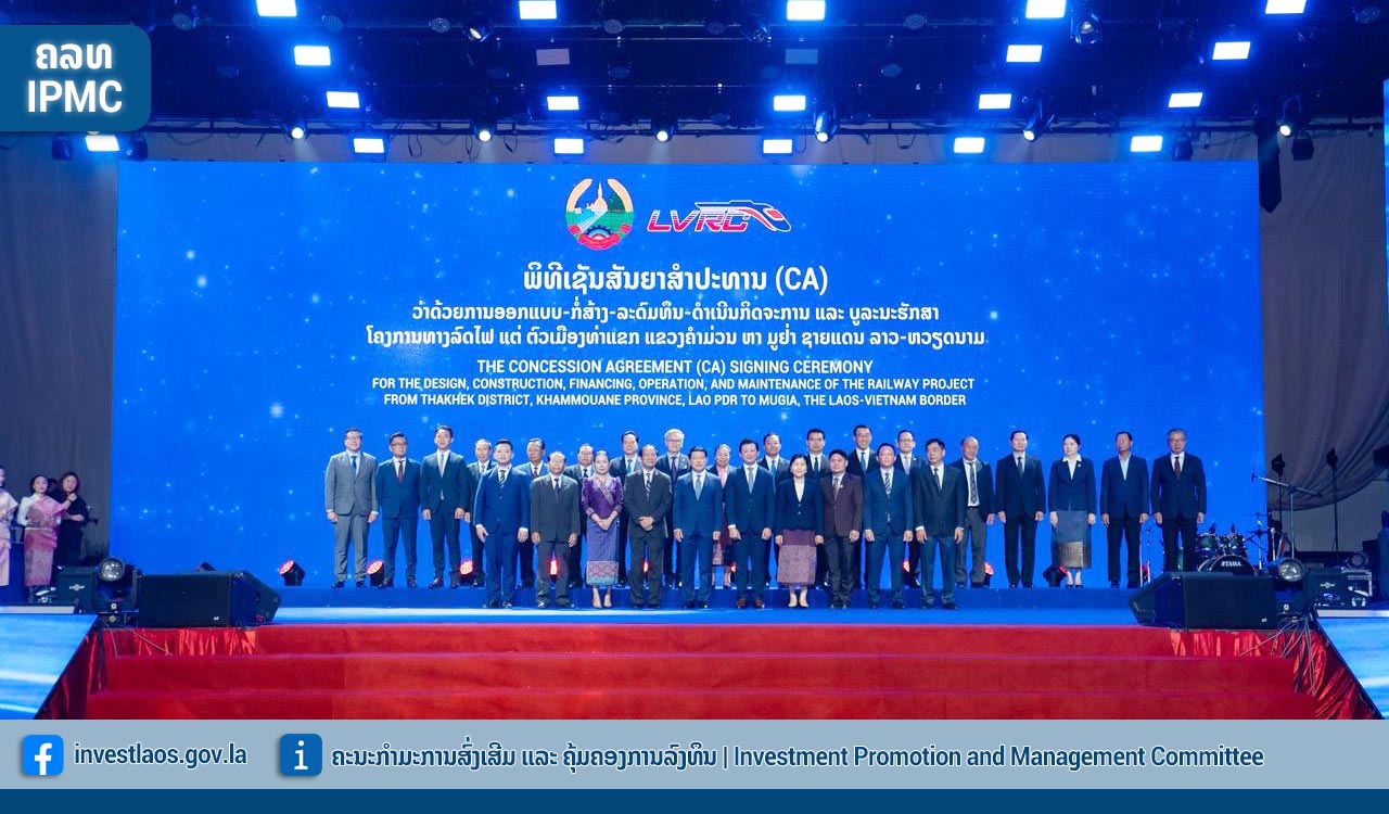 The signing of the Concession Agreement for the project was held on behalf of the Government of the Lao PDR by Mrs. Phonevanh OUTHAVONG, Deputy Minister, Vice President of the Investment Promotion and Management Committee, Standing Member, and on behalf of the private sector by Dr. Chanthone SITHIXAY, President of the Lao-Vietnam Railway Company Limited (LVRC).